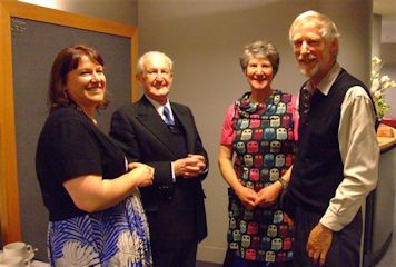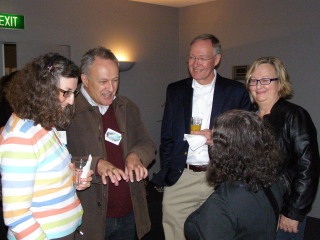 John took the opportunity to check out facilities in the theatrette, for sound recordings on presentation days, finding the staff helpful and, with one or two modifications, the system apparently workable. Sunday evening we gathered in the Merino Room for the cocktail reception, two delightful hours of drinks and canapés while catching up with Shute friends, old and new.