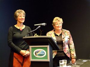 After lunch we were treated to a fascinating presentation, “Rainbow Country; Southwest Tasmania as Inspiration for Shute's "Rainbow and the Rose" by Mary King and Janet Fenton, daughters of Deny King, legendary tin miner in the remote southwest wilderness area of the state. Their presentation, prepared especially for our gathering, with assistance from Janet’s husband Geoff, illustrated exactly what Shute would have experienced when visiting their home in 1953, making the pages of his novel come to life.