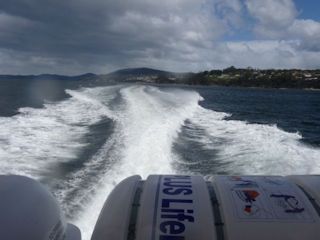 Seated at last, and after an airline-type safety briefing, we cruised out into the River Derwent and down the western shore past the casino and waterside homes, admiring spectacular 180-million-year-old Tasmanian dolerite cliffs and caves, keeping an eye out for the wildlife of our southern shores, all in relative comfort (some might question that last phrase!). Thanks to sharp-eyed owner/driver Rob, we spotted a majestic sea eagle.