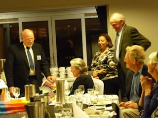 Our special guests arrived, mingling with delegates over pre-dinner drinks, before everyone found their seats for the three-course dinner. We had a choice of two selections for each course. As entrees were served, Chris introduced our special guests. Besides guest speaker Bill Vincent and his daughter Kelsey Hartland, we had Mary King and daughter Kylie, Janet and Geoff Fenton, Ben and Jane Marris, (apologies from Rob Gard, Lawrence Johnston and his producer Peter Kaufmann), and last minute guests David and Jenny Rayner.
