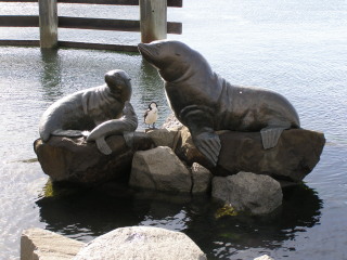 Thursday morning we gathered in the foyer, picked up our boxed lunches and walked across to the waterfront, where we had a quick look at the Mawson memorial; life-sized bronze statues of the arctic explorer, his camera and one of the sled dogs, against a background of bronze seals and penguins on the rocks, then made the short walk to the cruise boat office.