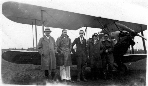 Left to right - Lord Grimthorpe, Nevil Shute, Reg Morris, Harry Worrall, H.A.Love (Reg Morris was Ground Engineer at Sherburn and H.A. Love was Assistant Flying Instructor.) (RMor) |