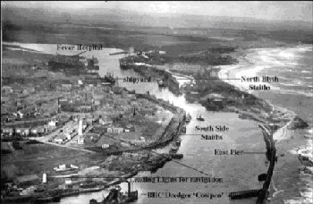Blyth on England's North East coast was the inspiration for Sharples in Ruined City. This photo shows Blyth in 1933 around the time that the book is set. It looks as though the Fever Hospital is up the hill from the shipyard just as the hospital was in the book. It is certainly a geographically useful and potentially pretty place. (Photo: Courtesy of The Blyth Historical Society 2006) |