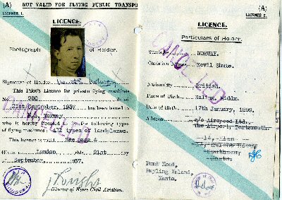 Pilot's licence issued to Nevil S. Norway in 1937 |